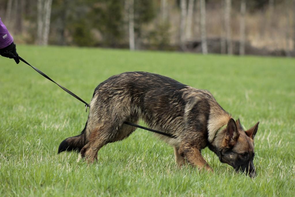 Jälki lajina on myös tietenkin aivan uutta ja ihmeellistä minulle, mutta yksi osa suojelusta joten myös sitä piti alkaa treenaamaan. Kuvassa Otto on 6kk ja ihan ensimmäisellä jäljellä (voi kunpa olisin osannut aloittaa jo paljon aiemmin).